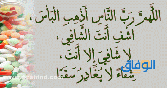 • إلهي أذهب البأس ربّ النّاس، اشف وأنت الشّافي، لا شفاء إلا شفاؤك، شفاءً لا يغادر سقمًا، أذهب البأس ربّ النّاس، بيدك الشّفاء، لا كاشف له إلّا أنت يارب العالمين.