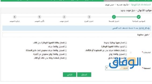 تحديد أقرب مكتب للأحوال المدنية، ثم تأكيد الحجز