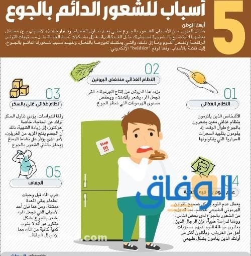 أسباب الشعور بالجوع المستمر كما يقدمها لكم موقع الوفاق- wiifaq.com كثيرة ومتنوعة، حيث يعتبر الجوع وتناول الطعام باستمرار أكبر عدو لمن يكتسبون وزنًا بسرعة كبيرة في حين أنهم ينشدون الوزن المثالي، فالشعور بالجوع طوال الوقت قد يكون مؤشرًا إلى أن الجسم بحاجة لشيء ما أو به خلل ما، لذلك يجب الوقوف على مسببات هذا الشعور ومعالجتها بالطرق العلمية والصحية المناسبة للوصول للأهداف المنشودة أهمها الحصول على جسمي صحي خال من أية اضطرابات.