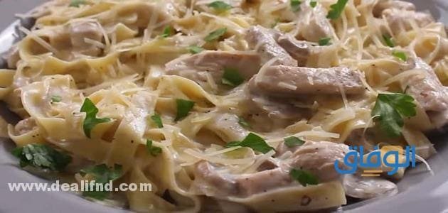 - نضيف الخليط فوق المعكرونة المسلوقة ونقلب المكونات مع بعضها، بعد ذلك نقوم بإضافة الدجاج ثم تقدم بالهنا والشفا.