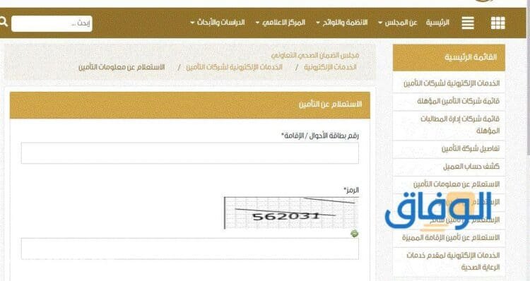 - حيث يتم الإنتقال فوراً إلى الصفحة الرئيسية لخدمة معلومات التأمين.