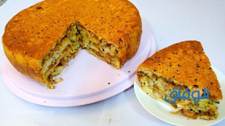 - كرري هذه الخطوة حتى يتم وضع سبع طبقات من العجين وعليهم طبقات الدجاج بالبصل، على أن يوضع في النهاية طبقة من العجين.