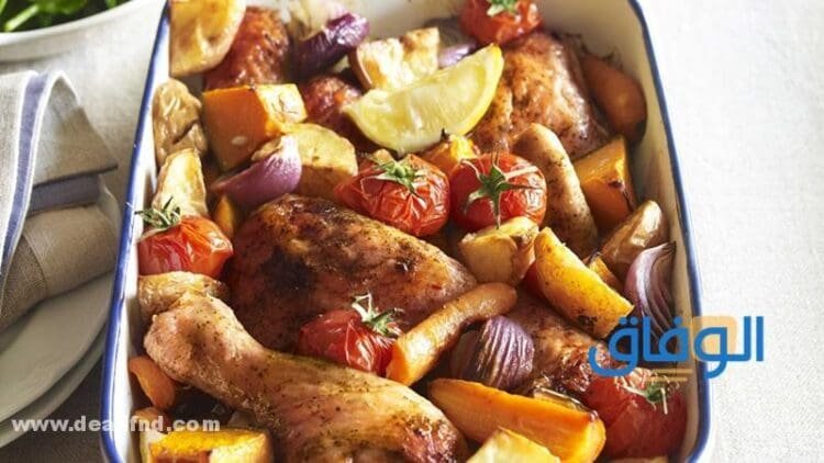 من ضمن اكل سريع التحضير للغداء نجد صينية الدجاج بالخضراوات التي يمكن تحضيرها في وقت قليل بأقل مجهود باستخدام المكونات التالية :