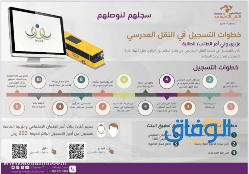 طريقة التسجيل للنقل المدرسي عبر منصة نور