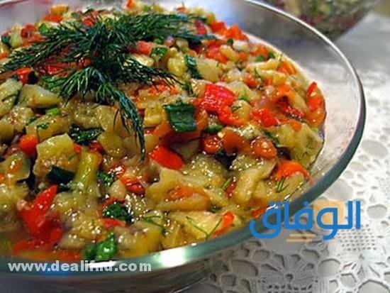 - التقليب الجيد لجميع المكونات ثم تقديمها كطبق جانبى بجوار الأطباق الرئيسية المختلفة من لحوم واسماك ودجاج وخلافه.