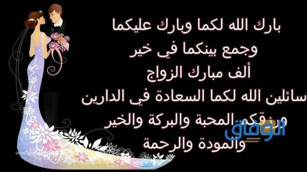 - أدعو الله تعالى أن يرزقكم السعادة والنجاح في حياتكم الزوجية، وأن يكون الحب والتفاهم هما السمتان الدائمان في حياتكم.