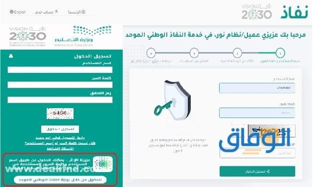 - النقر على الرابط التالي للدخول على نظام نور.