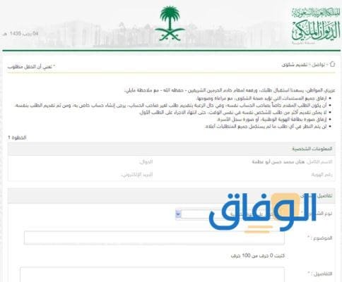 - تحديد جملة “شكوى للديوان الملكي (تواصل)”.