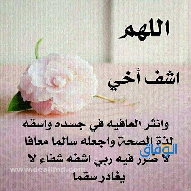 • أسألك يا مُجيب دعوة المضطر أن تزيل التعب والمرض عن أخي، اللهم إني استودعتك إيّاه فاحفظ وديعتك، ولا تريني فيه بأسًا.