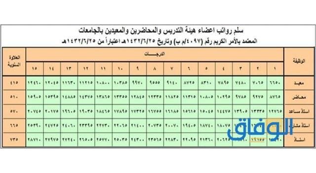 سلم رواتب أعضاء هيئة التدريس