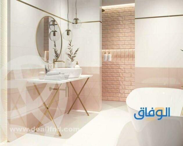 • يمكن اختيار سيراميك الحمام من خلال مزج لونين مثل الابيض مع الزهري، أو الأسود والابيض.