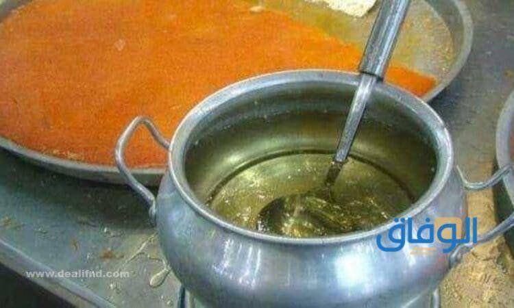 - بعد غلق النار يتم إضافة السمن، وماء الزهر، ونتركه جانبًا حتى يبرد قليلاً قبل استخدامه.