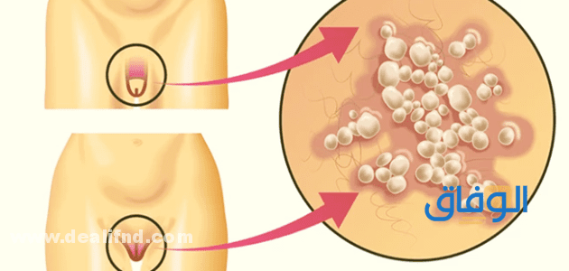 - ظهور ثآليل حمراء صغيرة وتقرحات حول الأعضاء التناسلية وفتحة الشرج.