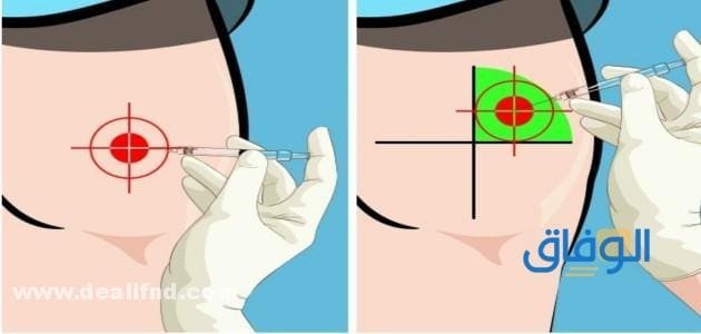 - لذا يجب تغيير المكان في كل مرة لعدم حدوث إلتهاب.