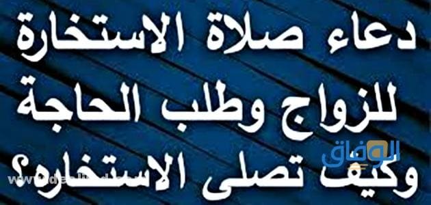 “اللهم إني أستخيرك بعلمك، واستقدرك بقدرتك، وأسألك من فضلك، فإنك تقدر ولا أقدر، وتعلم ولا أعلم، وأنت علام الغيوب. اللهم فإن كنت تعلم هذا الأمر (تسميه بعينه) خيرًا لي في عاجل أمري وأجله، وفي ديني ومعاشي عاقبة أمري. فاقدره لي ويسره لي، ثم بارك لي فيه، اللهم وإن كنت تعلم أن هذا الأمر شر لي في ديني ومعاشي وعاقبة أمري. وفي عاجل أمري وآخره، فاصرفني عنه واقدر لي الخير حيث كان، ثم رضني به”.