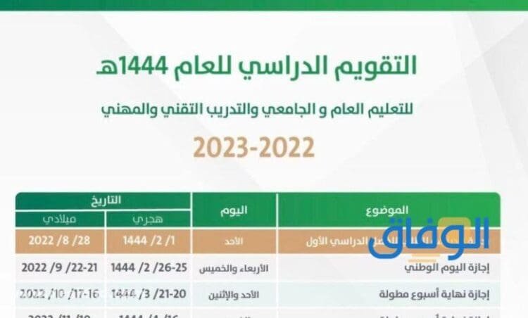 - ينطلق الفصل الدراسي الأول يوم الأحد الموافق 1 من صفر 1444، الموافق 28 أغسطس 2022.