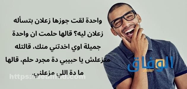 - واحدة لقت جوزها زعلان بتسأله زعلان ليه؟ قالها حلمت ان واحدة جميلة اوي اخدتني منك، قالتله متزعلش يا حبيبي دة مجرد حلم، قالها ما دة اللي مزعلني.
