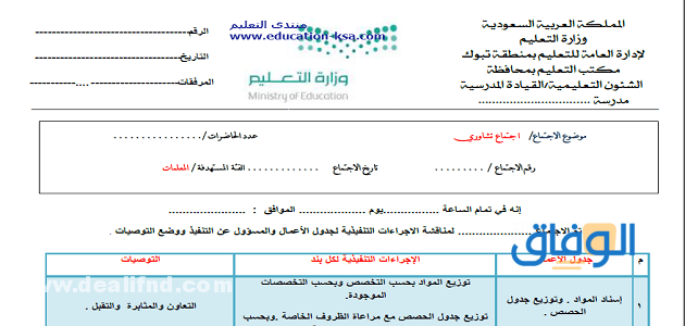نموذج محضر اجتماع مدير المدرسة مع المعلمين